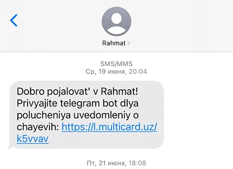 Когда пользователю приходит SMS со ссылкой, он переходит по ссылке в наш бот. Там он проходит регистрацию, нажав на кнопку “Старт”. После этого для проверки баланса нужно нажать на кнопку “Баланс”. (На рисунке все показано)