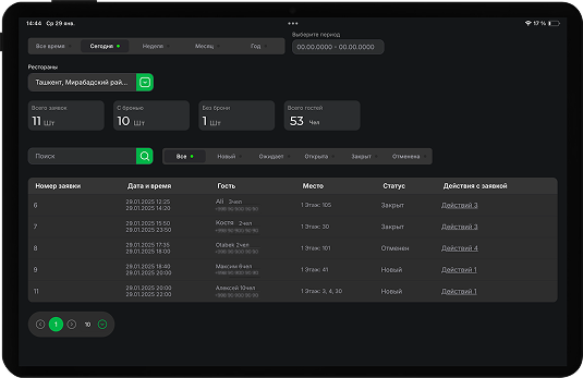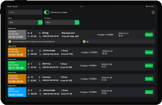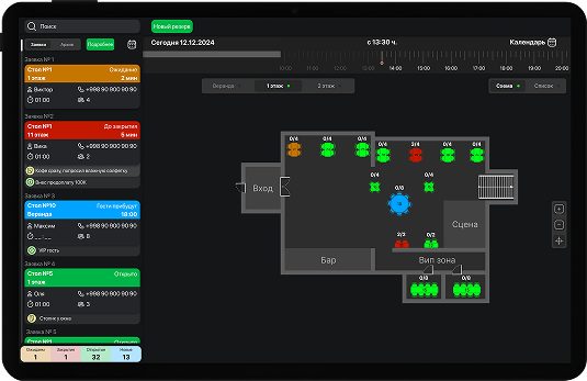 Отслеживайте загрузку залов, бронирования и эффективность смен