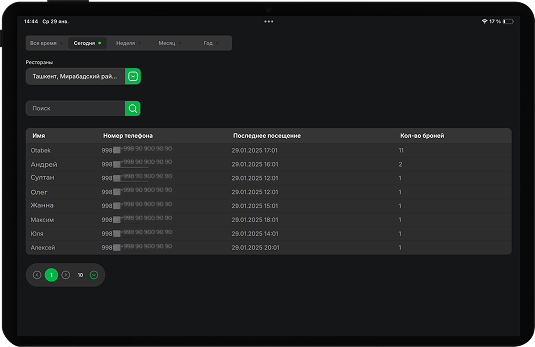 Цифровой журнал всех бронирований с удобным поиском и фильтрами.